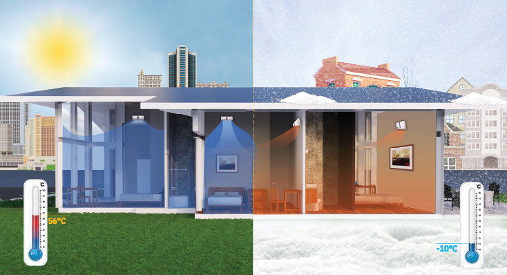 The VRF LITE keeps interiors cool even when temperatures outside soar up to 56°C. This has been made possible by careful selection of components and design that provides reliable operation even at high ambient temperatures.